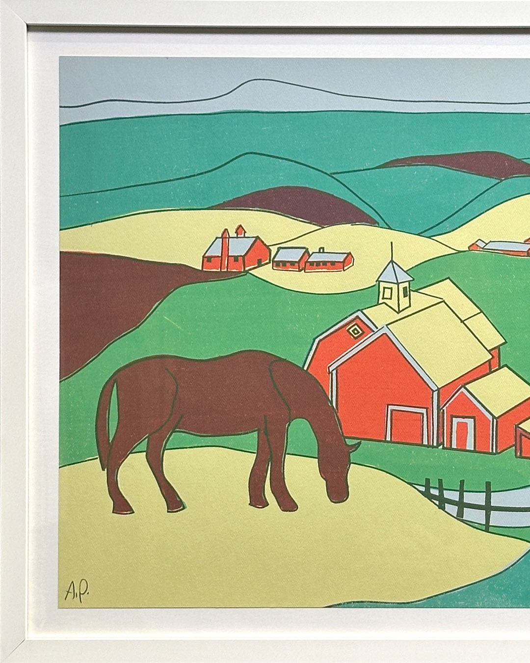 9-606 Mid-Century Modern Horse Farm Silkscreen Print Reid 25 x 20