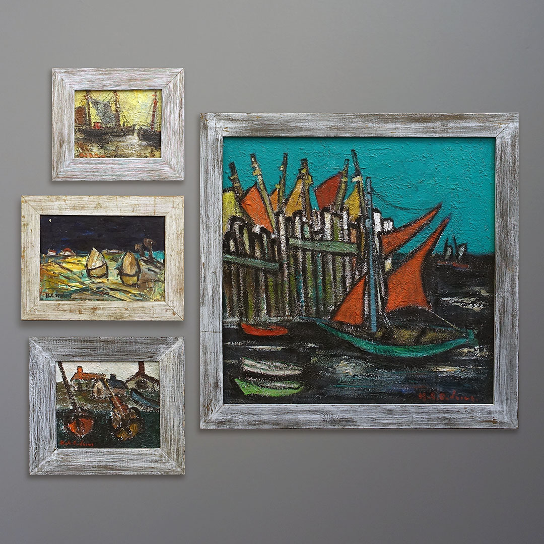 20-072 Hubert Henri de Vries “Sailboats” Original 1960s Painting