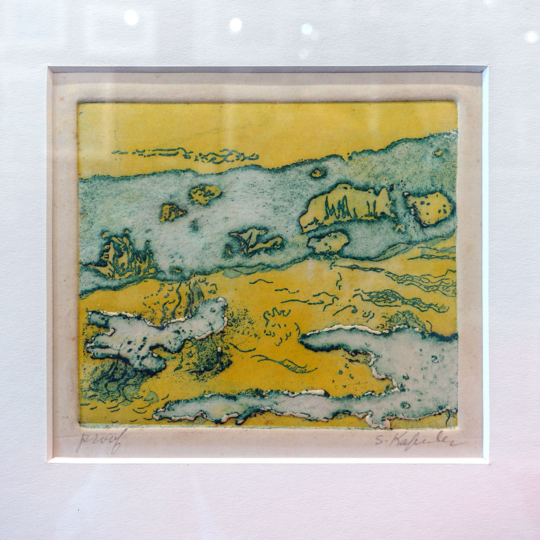 20-179 Yellow Tidal Pool Etching Mid Century Frame