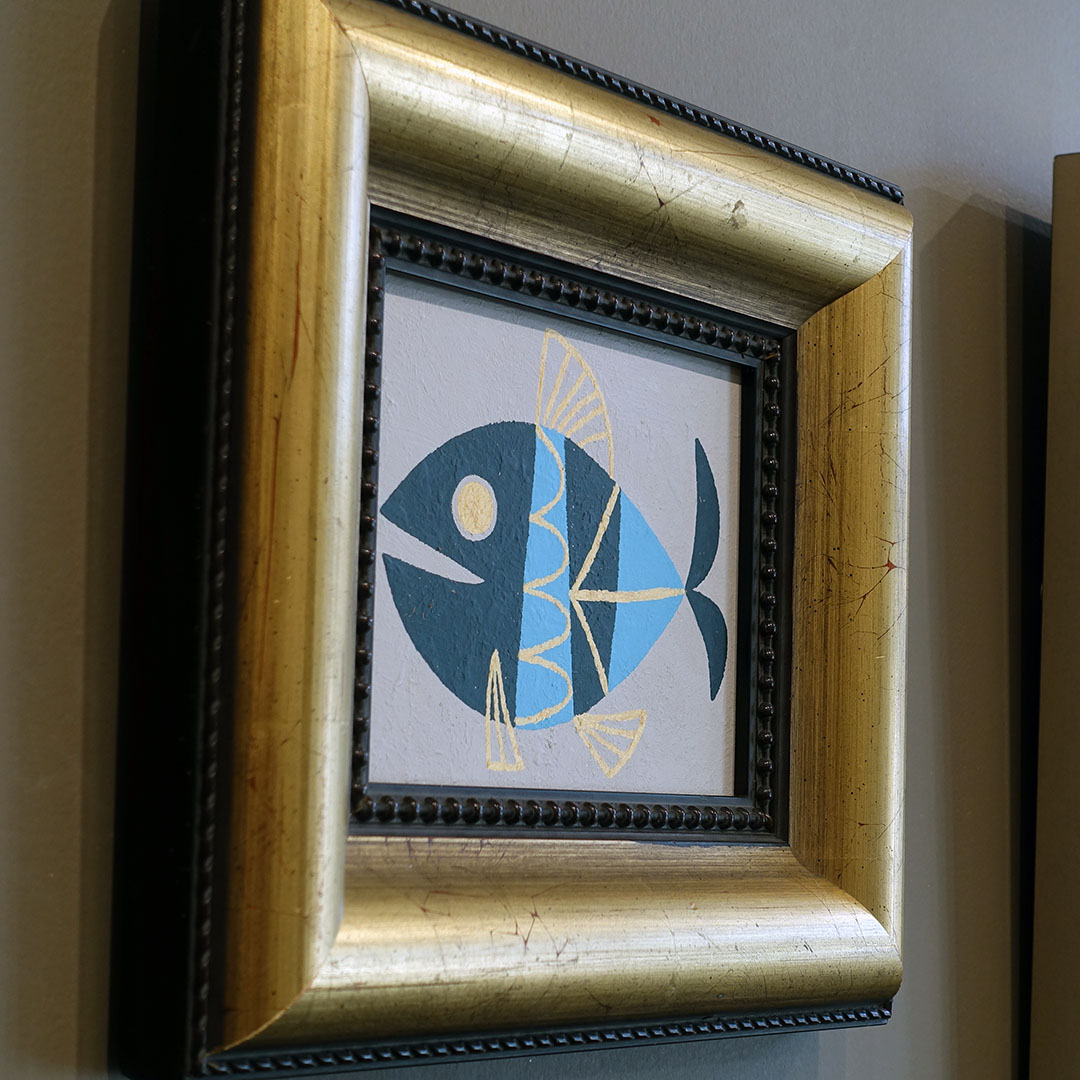 20-026 Kubach Fish Drawing Vintage Gold Frame