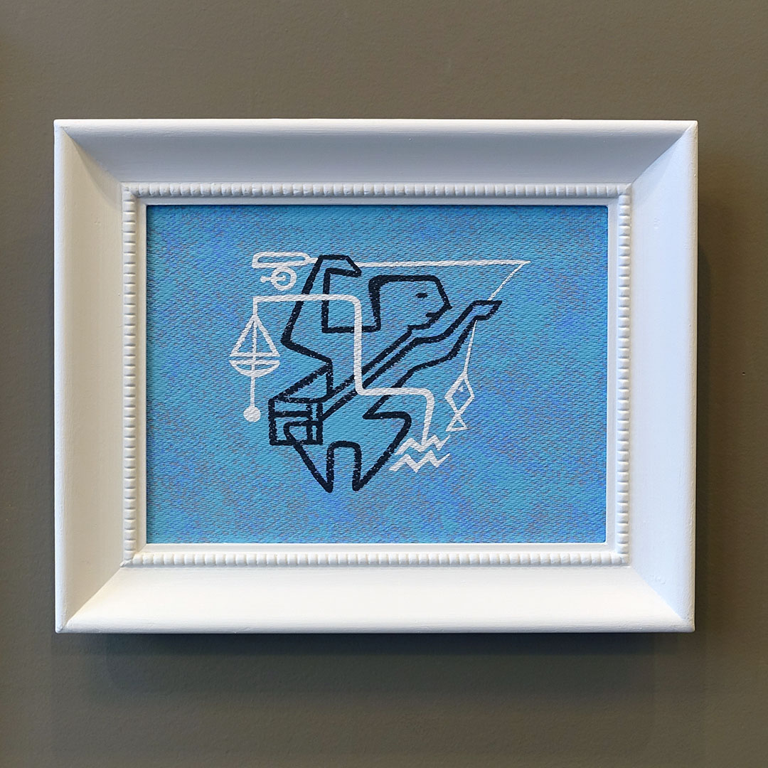Michael Aron created this original painting in 2020 as a way to preserve this whimsical design and as a tribute to one of the 20th Century’s greatest ceramicists. 13 × 16 inches in a period wood frame. Acrylic on board.