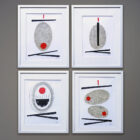 Offered here is an original mixed media abstract drawing on paper by Moya Aiken. 8¾ × 10½ inches as framed in matte silver aluminum. This drawing is part of a series as seen on this website. Each drawing is sold individually. Signed and dated 2019.