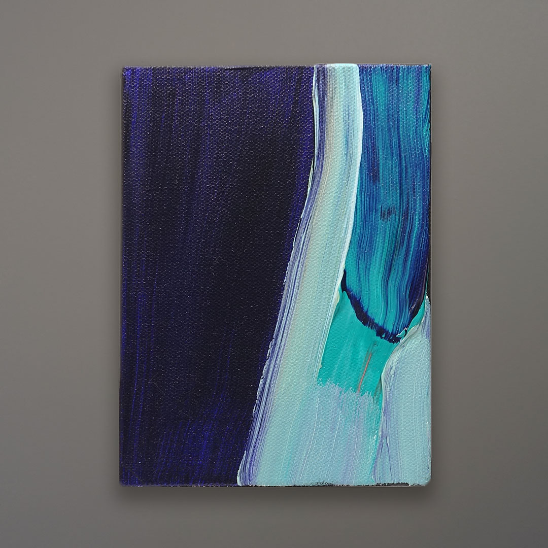 Original acrylic painting by Julia Guzzio, 2020. This work “Ocean Tides” was inspired by the waters surrounding Greenport, NY. Julia attended the Art Students League and earned her BFA from The School of Visual Arts, NY. 5 x 7 inches.