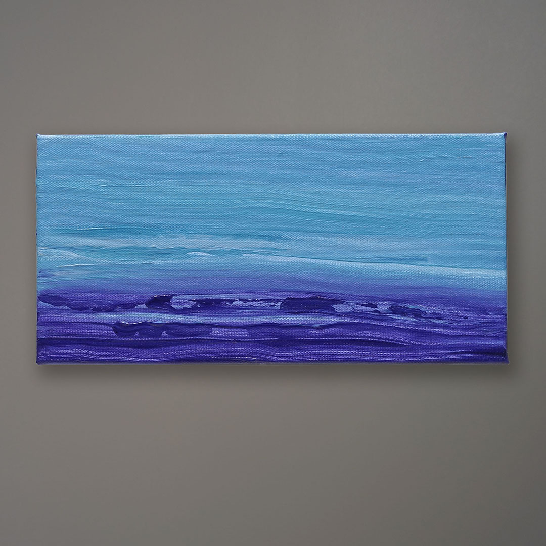 Original acrylic painting by Julia Guzzio, 2020. This work “Swirling Waves” was inspired by the waters surrounding Greenport, NY. Julia attended the Art Students League and earned her BFA from The School of Visual Arts, NY. 6 x 12 inches.