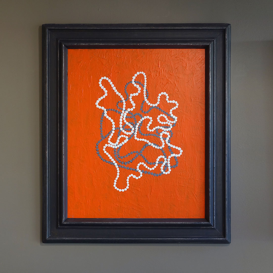 “Conversation I” by Michael Aron, 2021. 24 × 30 inches. An original synthetic polymer abstract painting on wood panel in a vintage matte black hardwood frame. Hangs either vertically or horizontally.