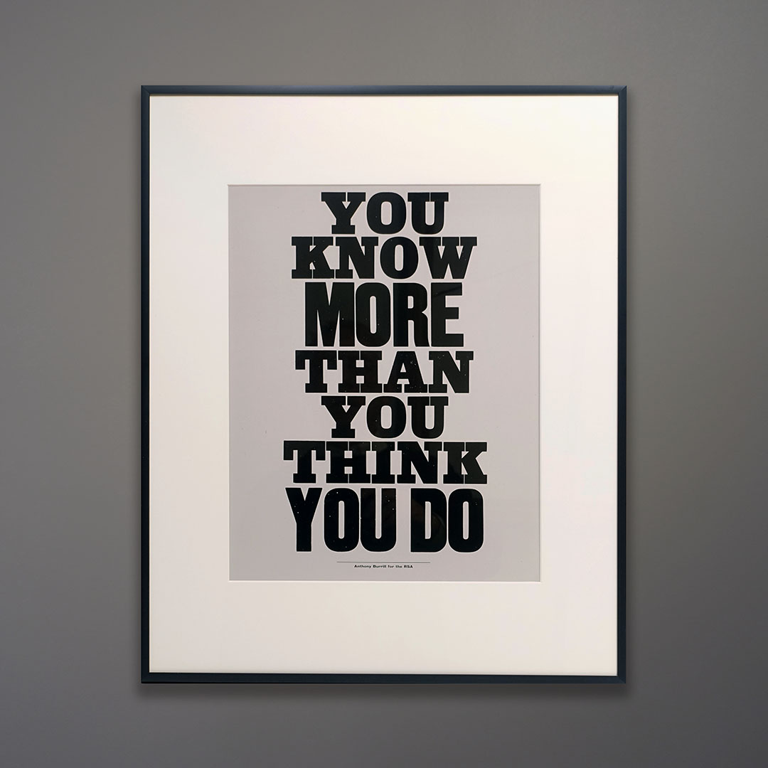 Words and language are an important part of Burrill’s output and he has developed a distinctive voice that is sought after not only by collectors of his posters and prints but also by clients including Apple, Google, Hermés, the British Council, London Underground and the Design Museum.