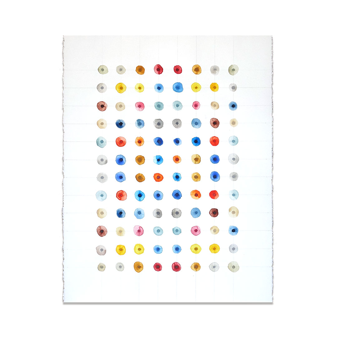 Original watercolor painting on paper by Shelter Island artist Leah Peeks. Peeks drew inspiration from the Washington D.C. Color School painters of the 1950s, especially Sam Gilliam, while she was living in Virginia. This artwork is distinctive because of the way the pattern responds to the viewer’s eye. A sense of movement, an awareness of the near-perfect design.