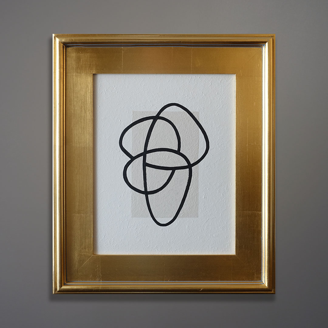 An original polymer painting on masonite by Michael Aron titled “Eighty-Nine” dated 2021. It measures 17×20 inches. It is in a new gold leaf on hardwood frame.