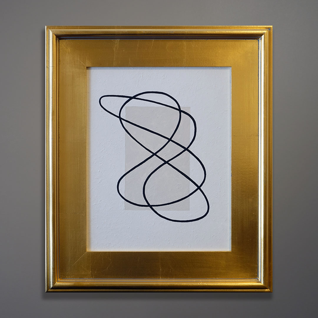 An original polymer painting on masonite by Michael Aron titled “Eighty-Eight” dated 2021. It measures 17×20 inches. It is in a new gold leaf on hardwood frame.