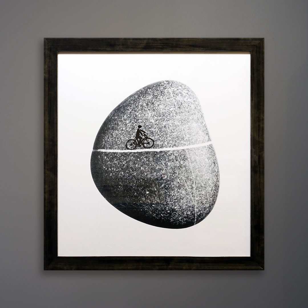 Offered here is a reproduction of a fabulous artwork by Bruno Munari that appeared in the children’s book “Afar It Was an Island” published in 1971. The book is out-of-print. This poster version is a pigment print on acid-free art paper. The frame is a dark glossy gray and measures 19 x 21 inches. Munari created over 15 children’s books and many toys. He is one of Italy’s most well-known artists.