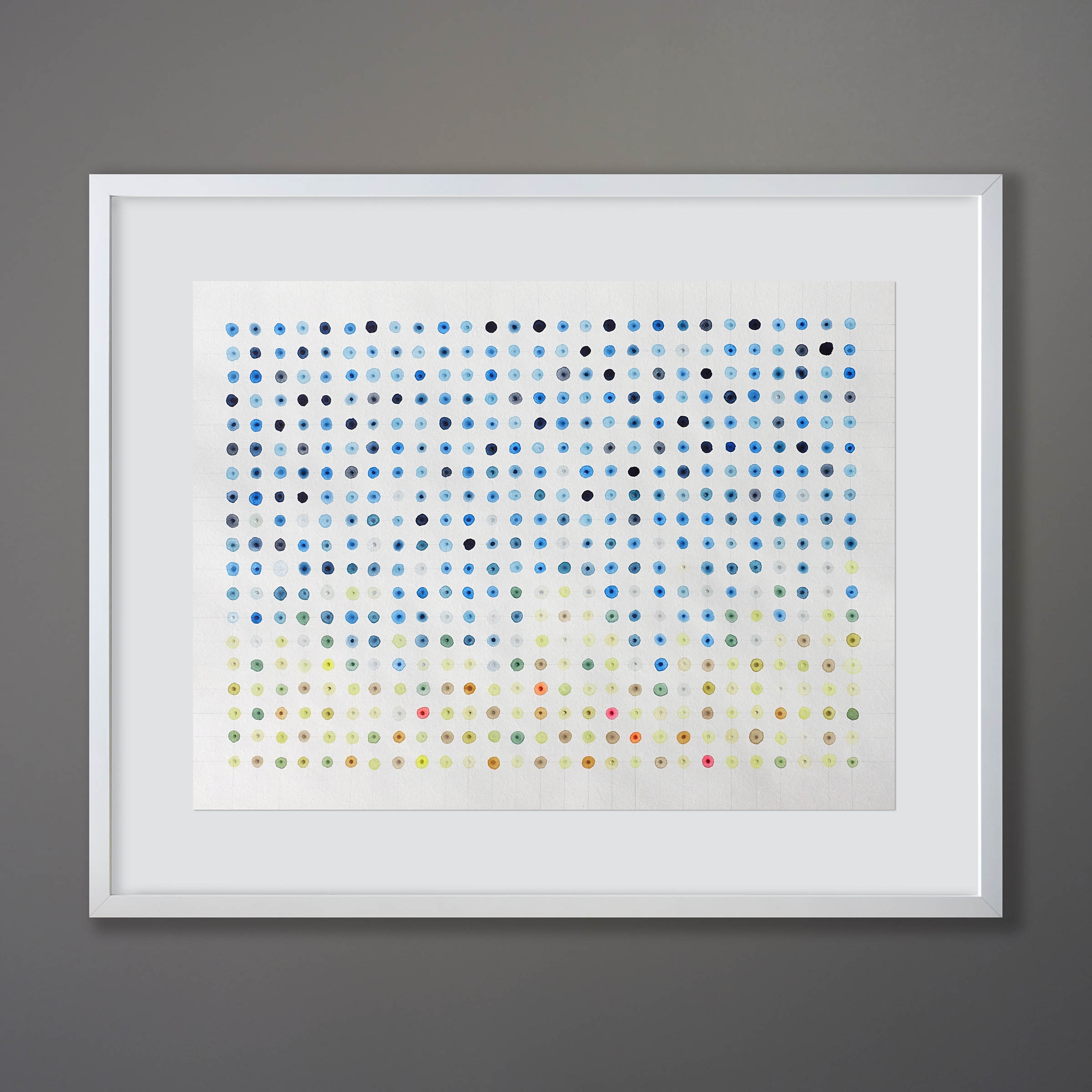 It will be float framed in a minimalist white matte wood frame faced with gallery acrylic glazing. The overall framed size will be 32×40 inches. Two-week lead time for custom framing. We recommend contacting us for a shipping estimate.