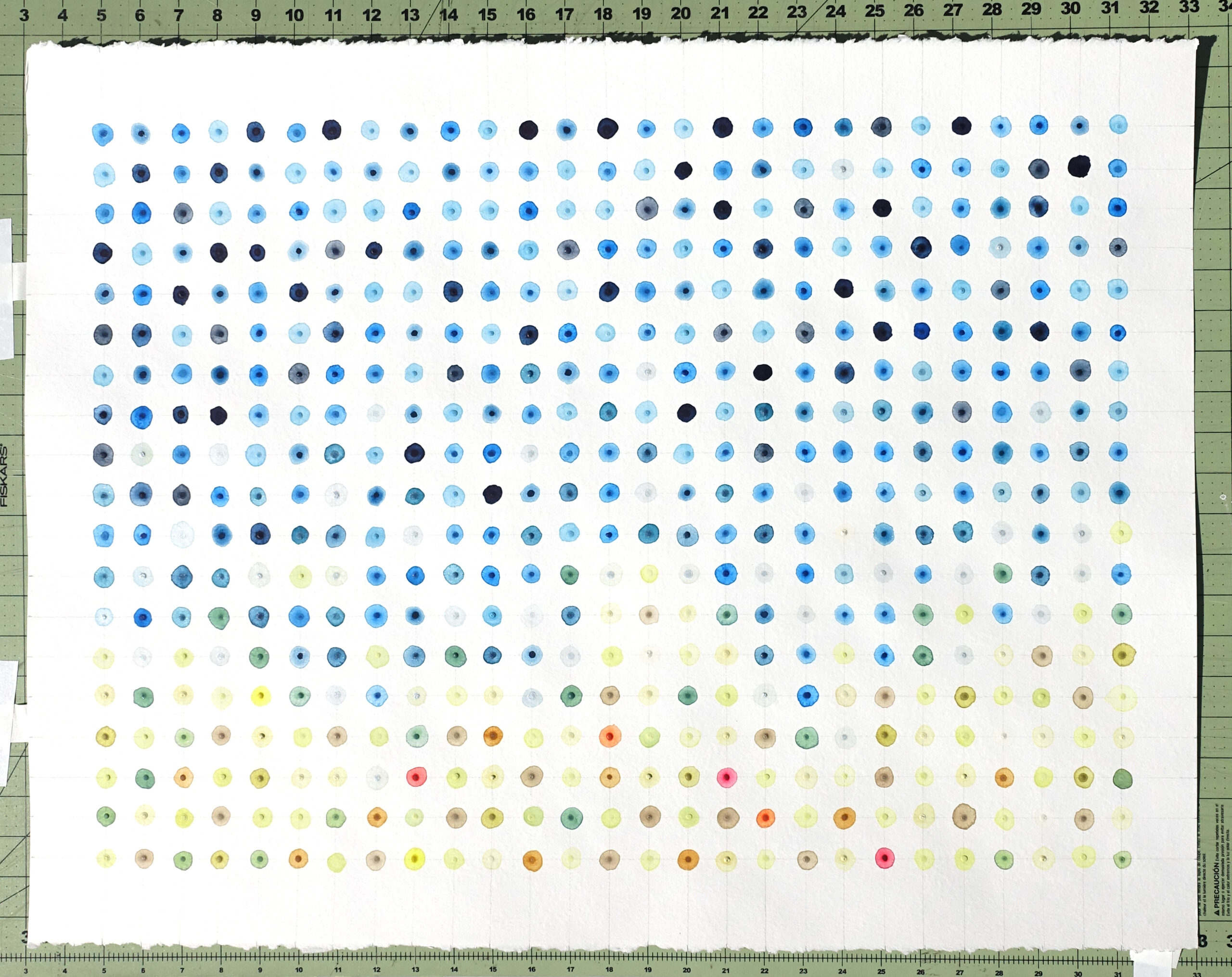 Original watercolor painting on paper by Shelter Island artist Leah Peeks. She’s a gallery best-seller. Peeks drew inspiration from the Washington D.C. Color School painters of the 1950s, especially Sam Gilliam, while she was living in Virginia. This artwork is distinctive because of the way the pattern responds to the viewer’s eye. A sense of movement, an awareness of the near-perfect design.