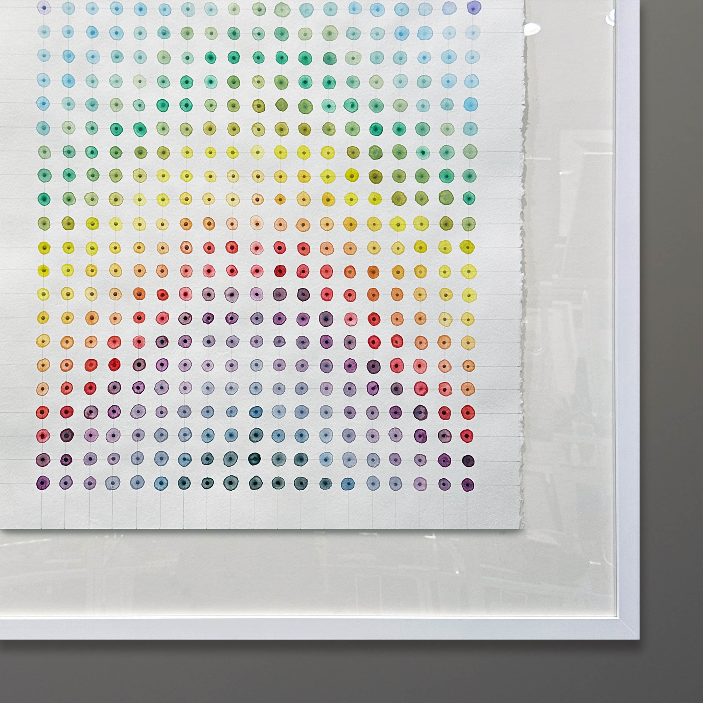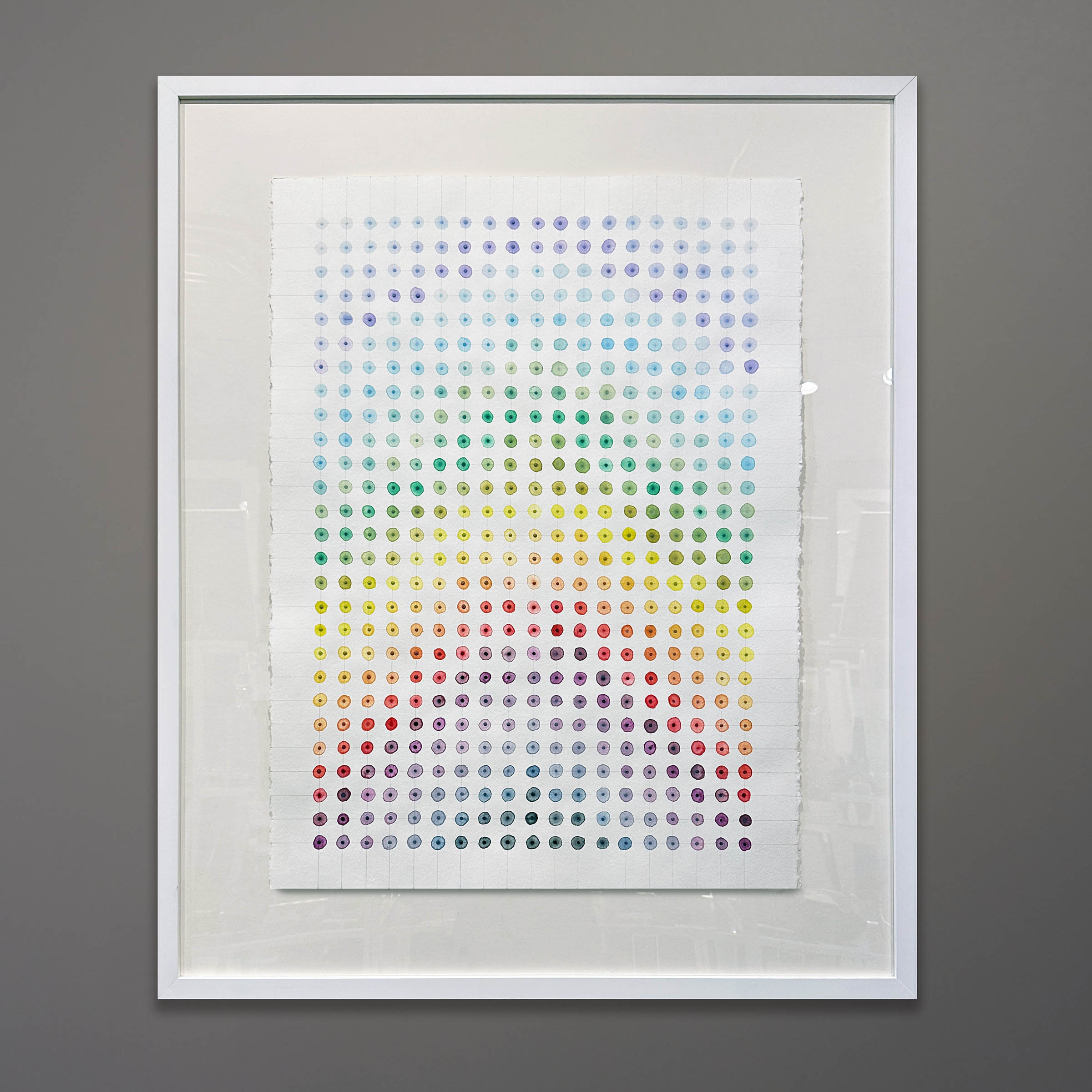 It will be float framed in a minimalist white matte wood frame faced with gallery acrylic glazing. The overall framed size will be 32×40 inches. Two-week lead time for custom framing. We recommend contacting us for a shipping estimate.