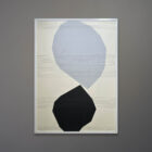 Offered here is an original abstract painting by Michael Aron “Conversation III” 2023. It is 36×50 inches in a slim glossy white aluminum frame.