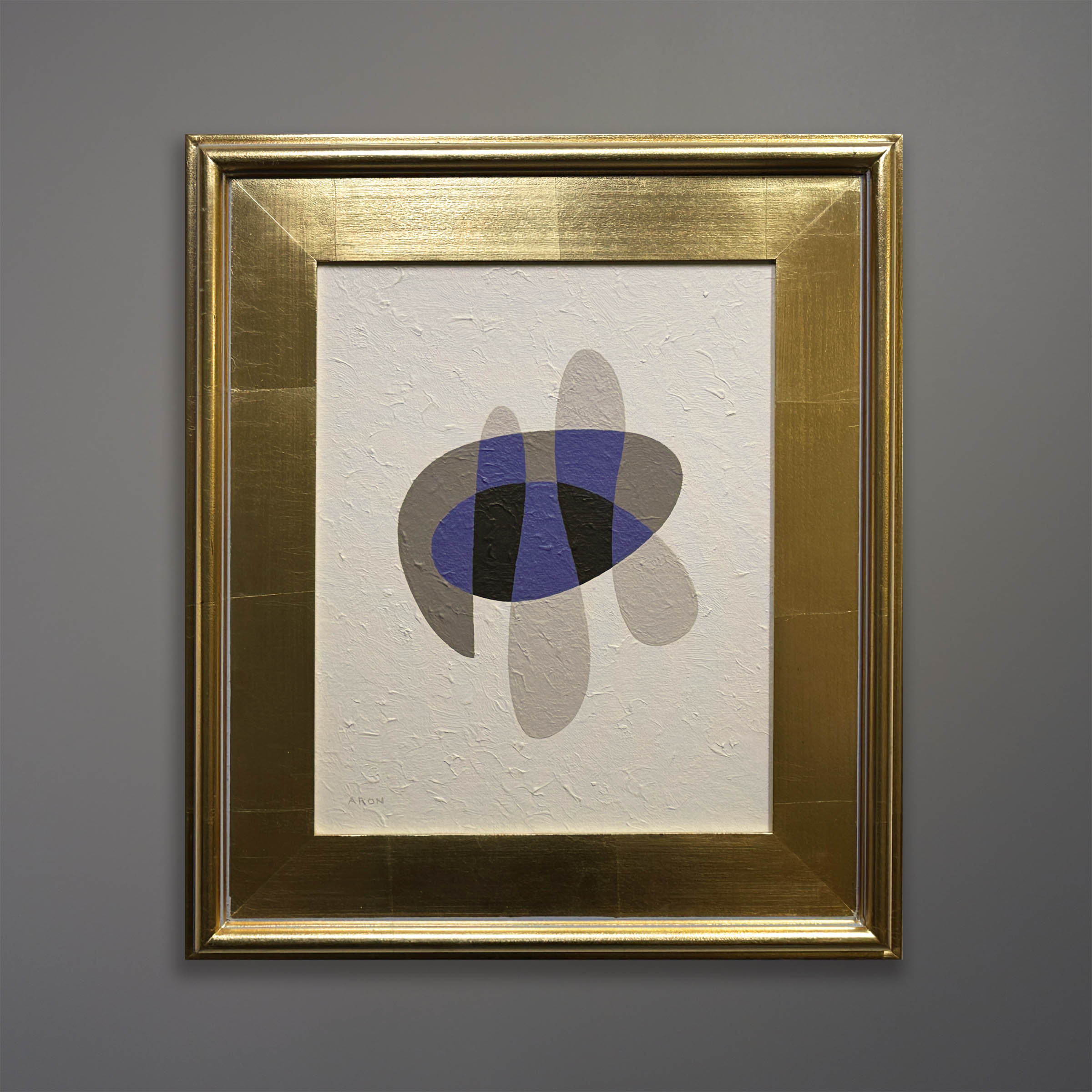 An original polymer painting on canvas panel by Michael Aron titled “Uruguay Beach V” dated 2023. Based on a sketch I did on the beach in Uruguay and inspired a bit by the Matisse Cut-Outs. Framed in a 17×20 inch gold leafed wood frame.
