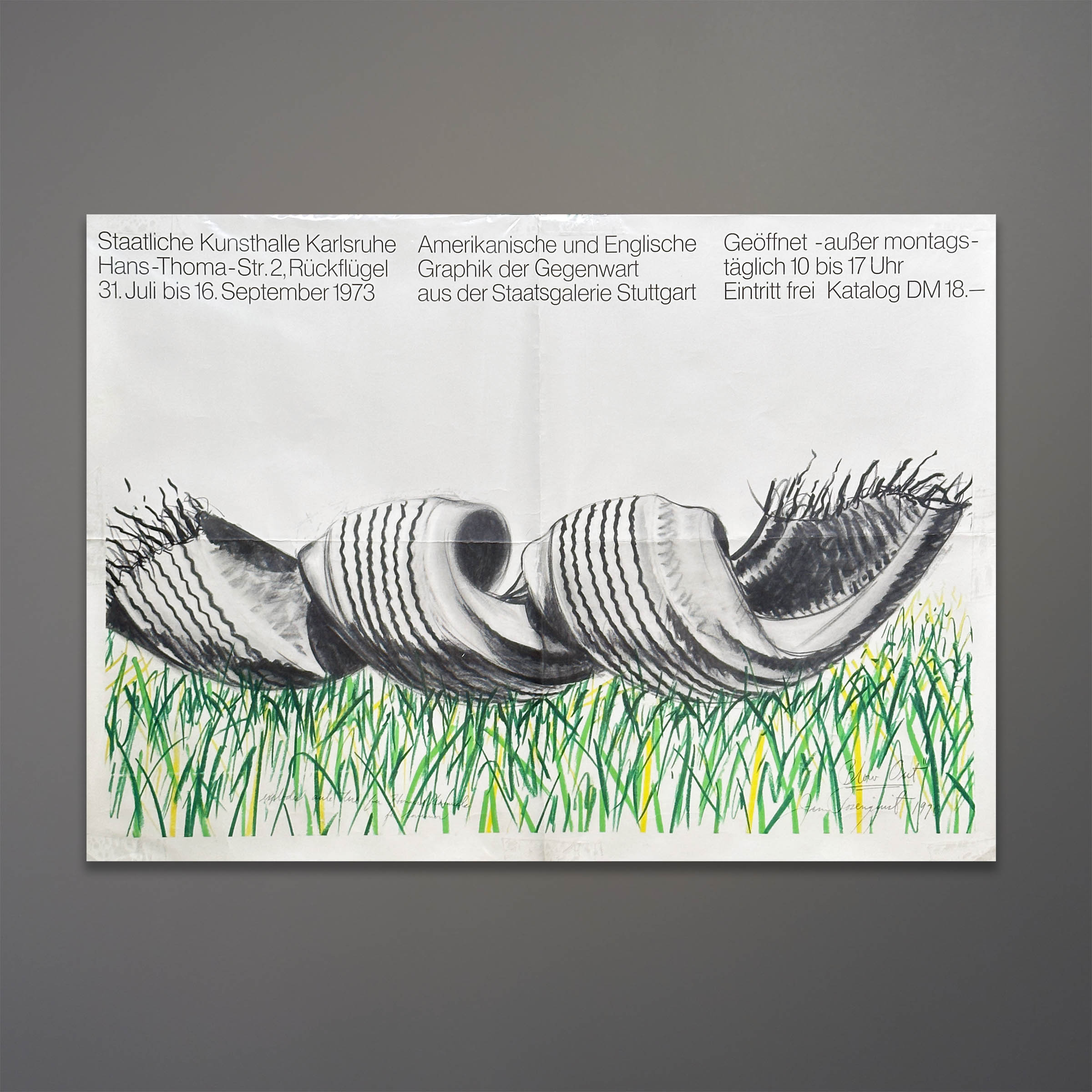 Offered here is a rare original vintage exhibition poster featuring a reproduction of the 1970 mixed media on paper titled “Blow Out” by James Rosenquist. The gallery is Staatsgalerie Stuttgart. Signed in the plate. The size is 27½×19¾ inches. A fold on one corner and the work had been folded across and down. Priced accordingly.