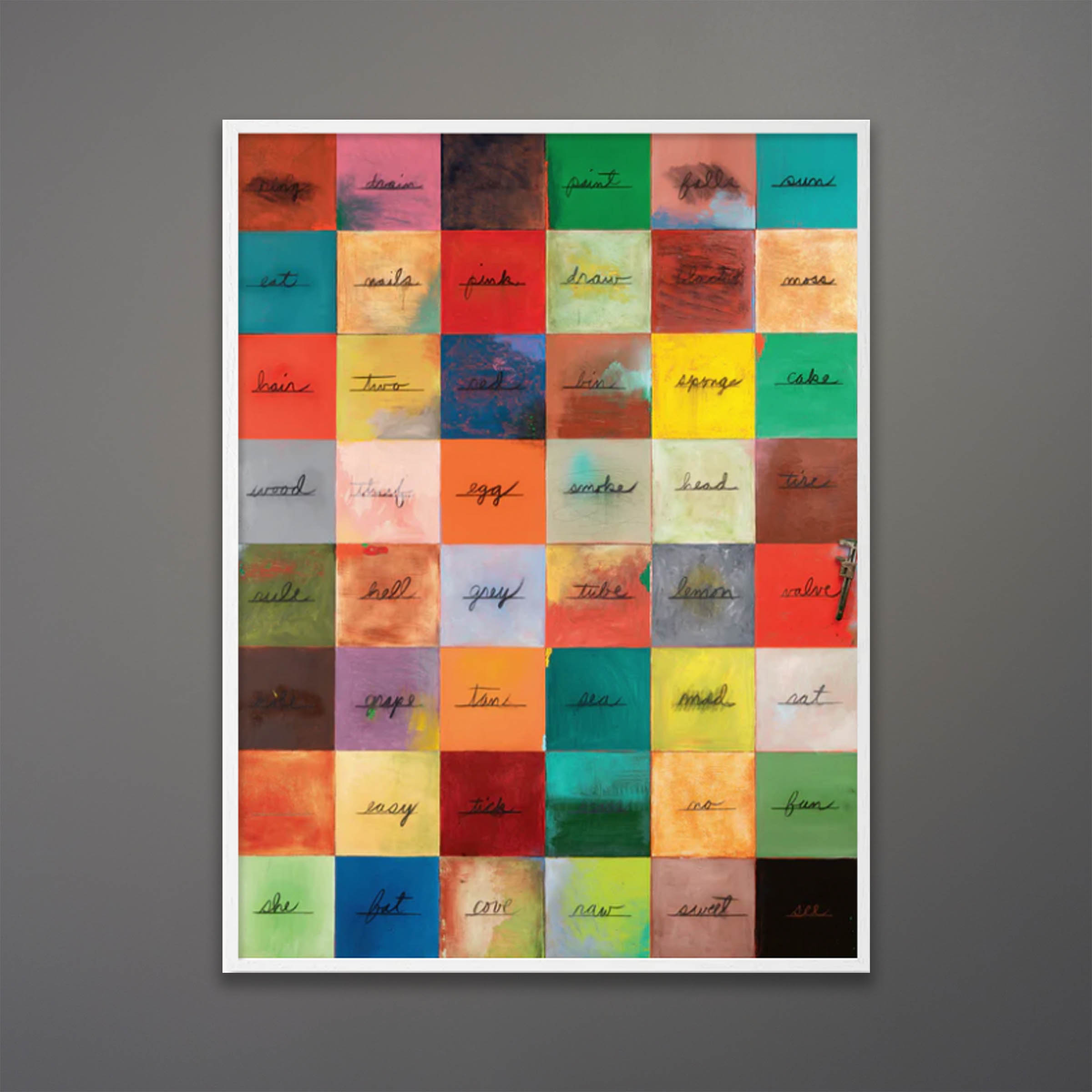 Exhibition posters printed by museums and galleries are an affordable way to add recognizable artworks in your home’s interior design. This reproduction of the painting “Words for Paul’s Daughters and a Little Wrench” from 1971 by Jim Dine is a perfect example. It measures 36×48 inches framed in matte white wood. Allow 2 weeks for custom framing.