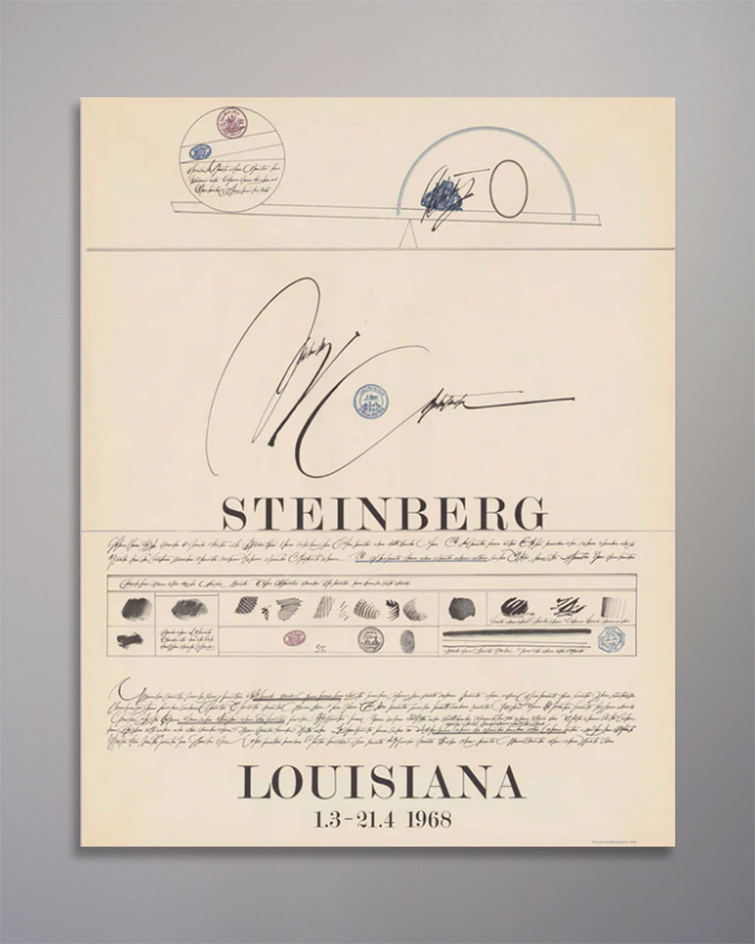 Exhibition posters printed by museums and galleries are an affordable way to add important artworks to your home’s interior design. This 2018 Danish poster features an offset reproduction of the 1968 poster printed to promote a solo exhibition of Saul Steinberg’s work. It measures 23×29 inches.