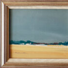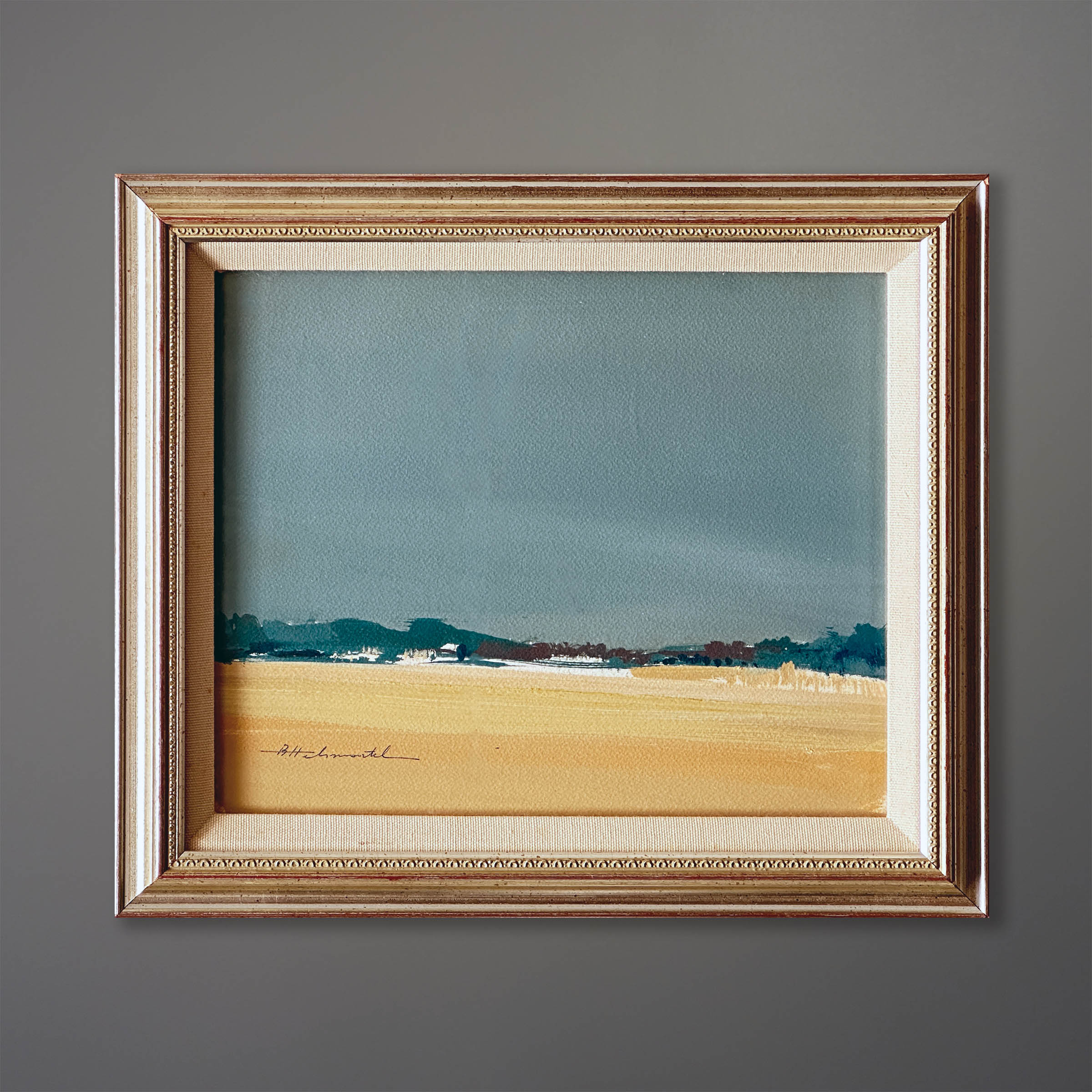 Gouache painting on board by Robert Helsmoortel, undated circa 1970s. 13×11 in its original silver leaf wood frame. The frame shows signs of wear. Priced accordingly.