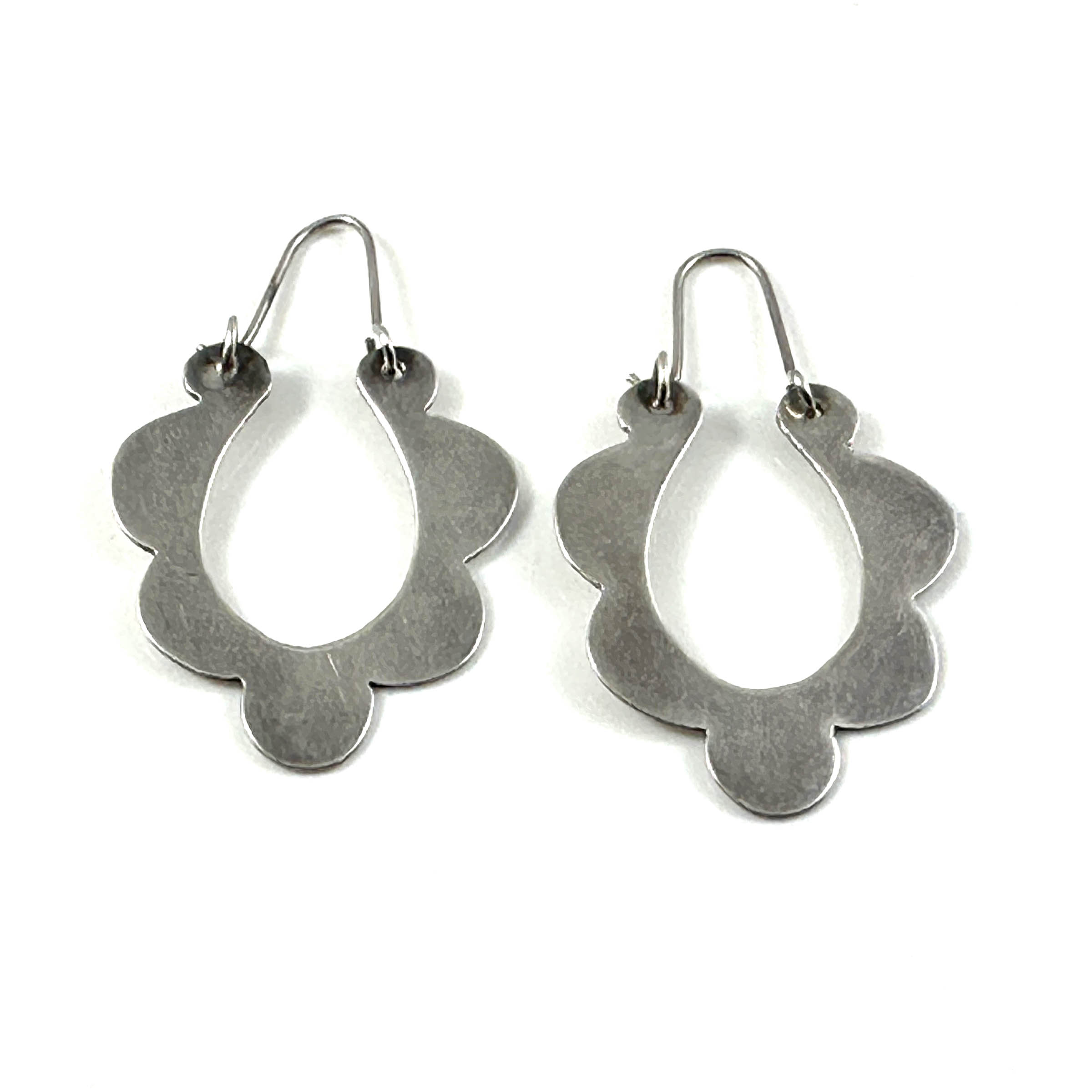 Mid-Century Modern earrings with oval lobes design. Made in Mexico. 925 Sterling silver.