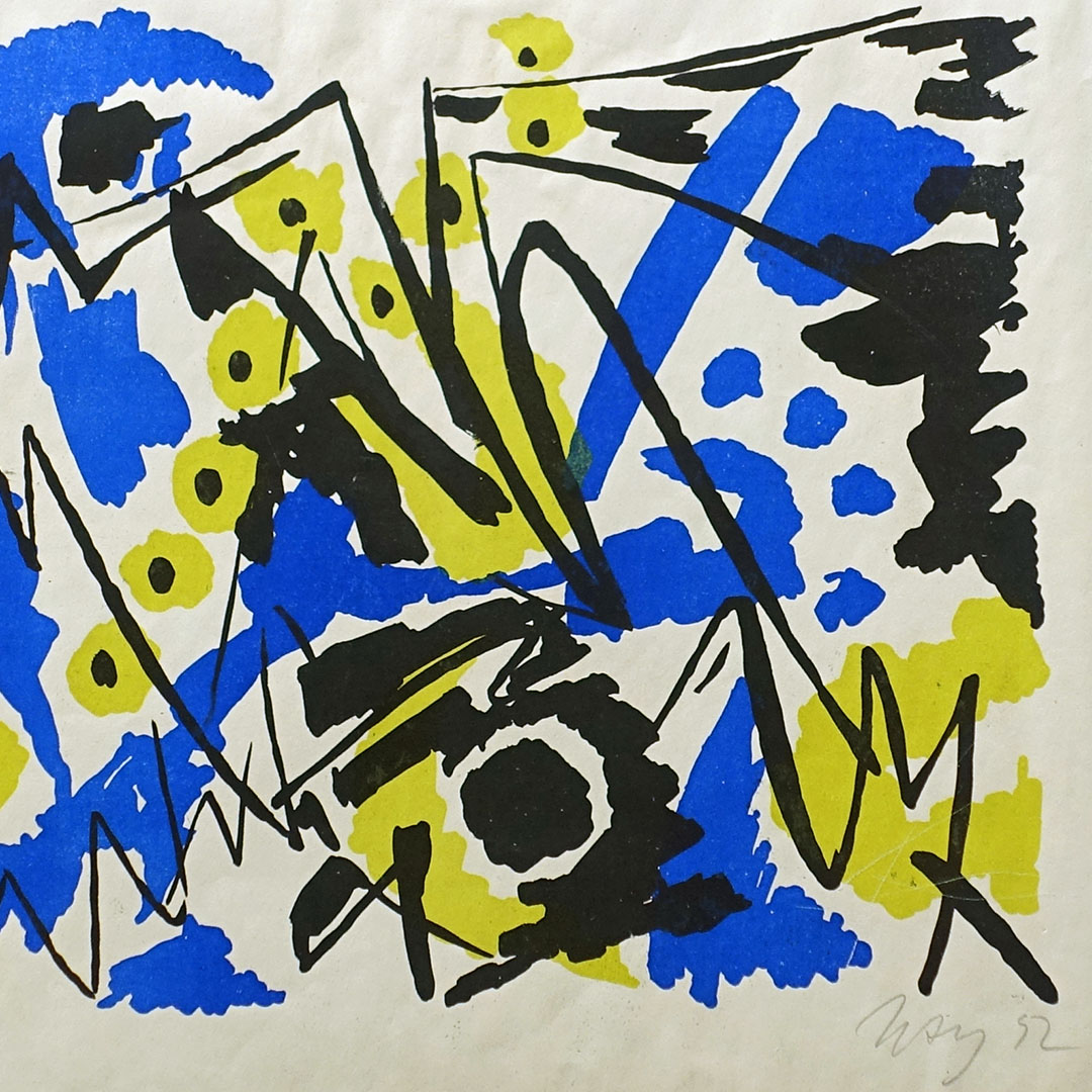 A 1967 poster advertising a German gallery exhibit of watercolor paintings by Emil Nolde, the Danish-German expressionist. It measures 24×33 inches. Offset lithograph, signed in the plate. Currently unframed. Ships rolled.