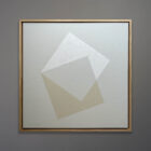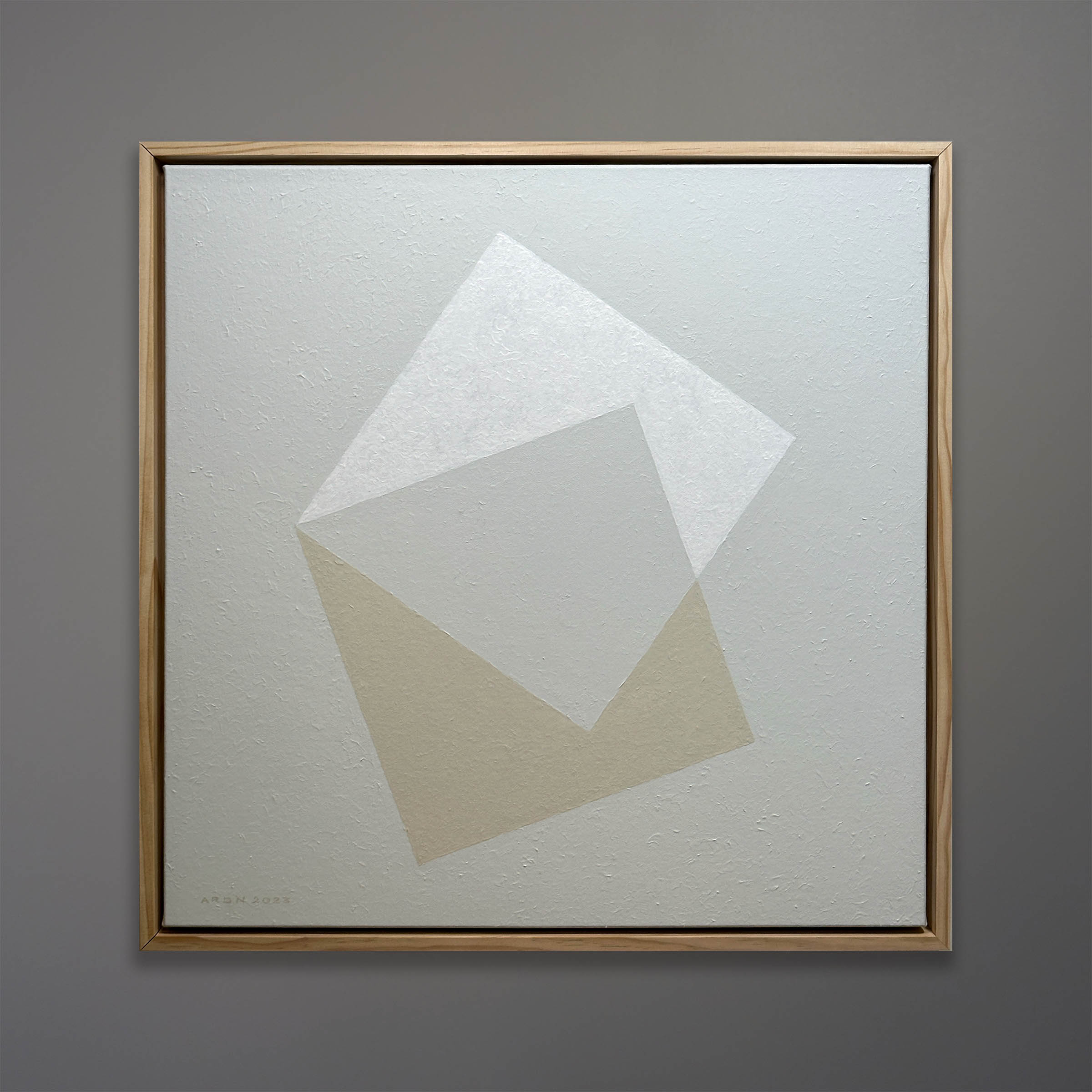 Offered here is an original painting on linen by Michael Aron “Some Parts” 2023. 26×26 inches as framed in natural wood frame. This painting is part of a triptych.