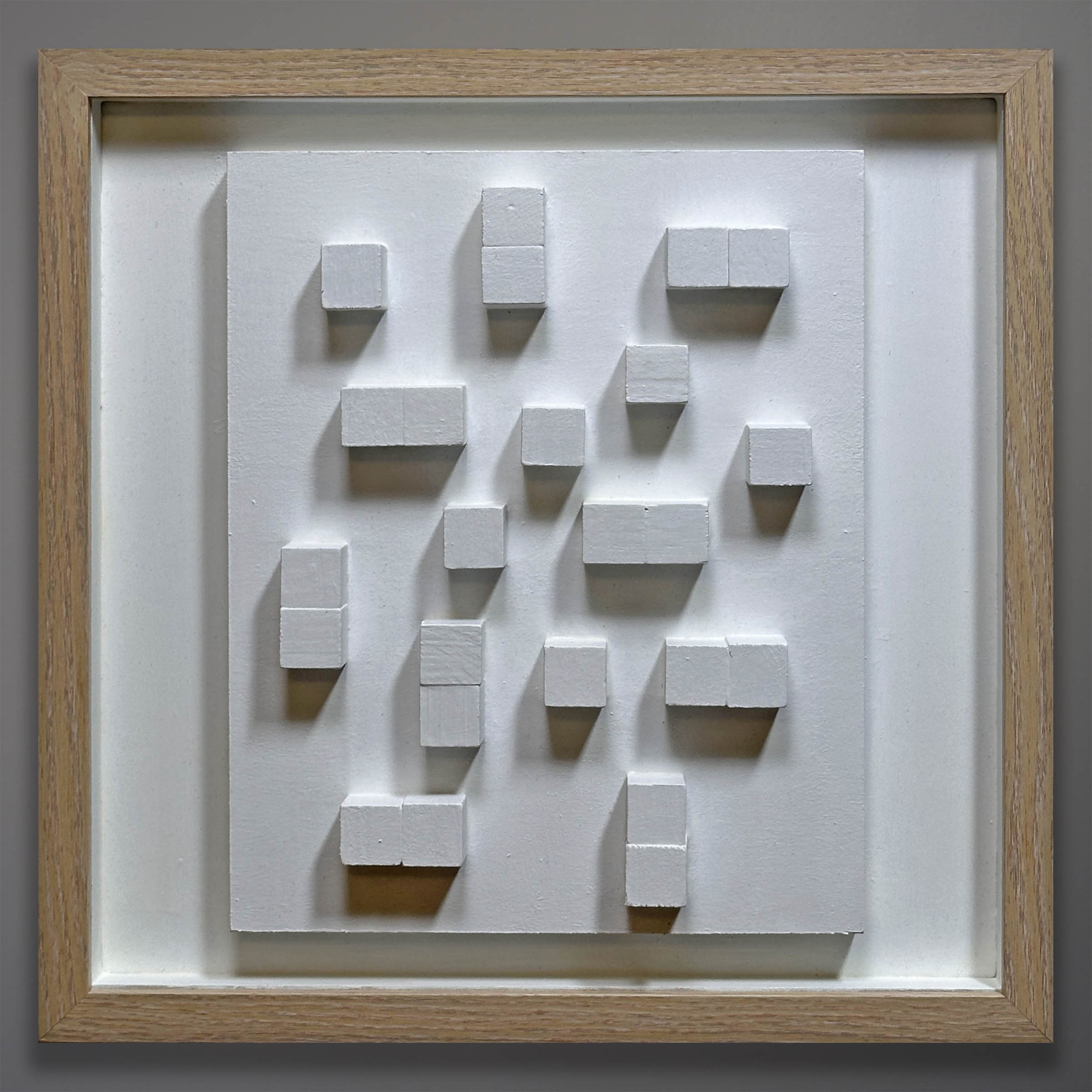 Original wood wall relief by Michael Aron, 2023. 13×13 as shown in a natural tone wood frame. Other frame options available. This artwork is inspired by a 1972 sculpture I made in my high school shop class. I gave it to my mother for her birthday.