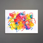 Bloom’s work is heavily influenced by the Mid-Century New York Abstract Expressionists and Action Painters such as Cy Twombly, Willem de Kooning, Franz Kline, Robert Motherwell, and Jackson Pollack. This particular example is reminiscent of Joan Miró and Joan Mitchell.