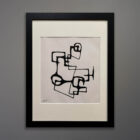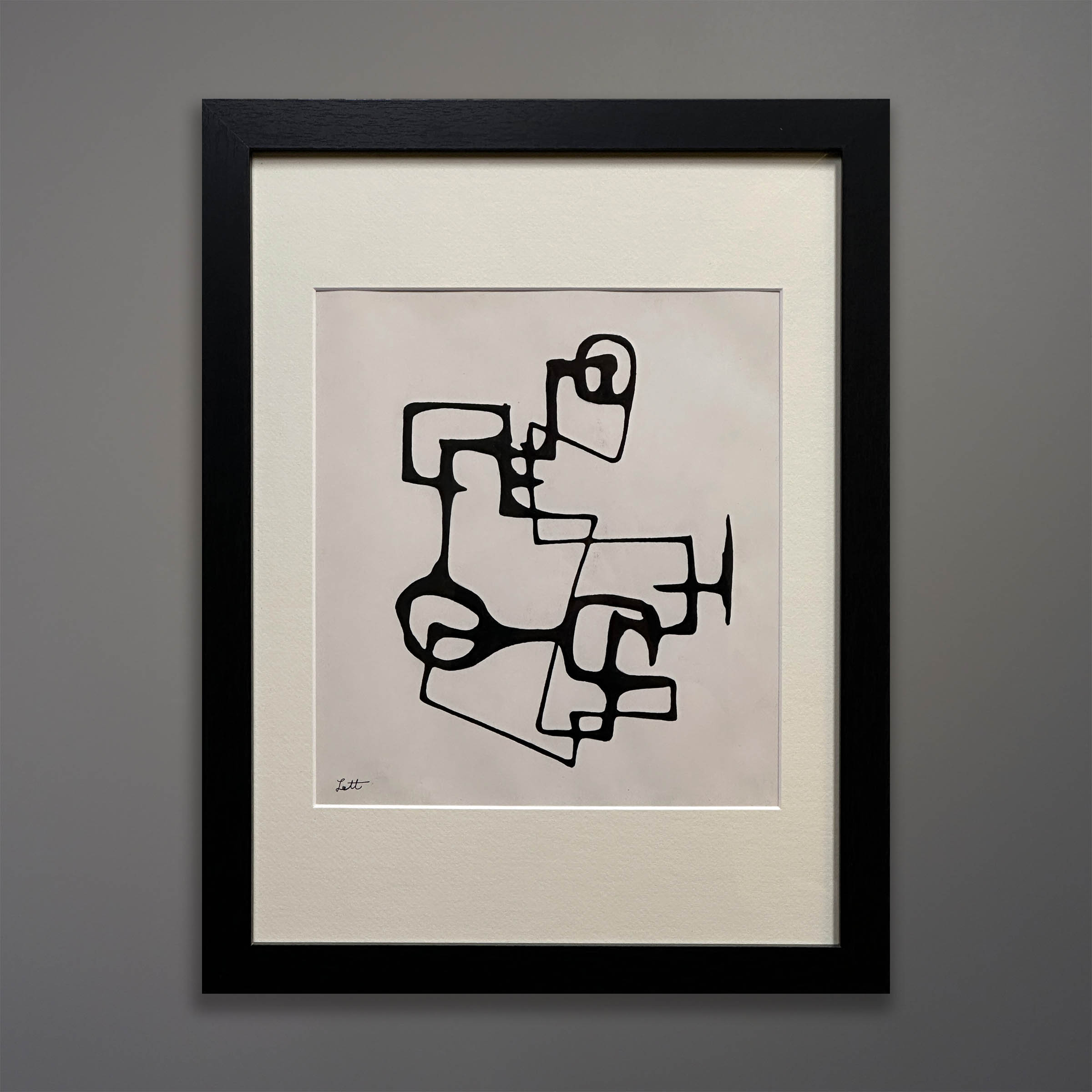Really good 1952 abstract drawing by Paul Lett. This original art illustrated a collection of 14 poems by Gil Orlovitz “Keep to Your Belly” published in 1952. Original ink drawing framed in black wood with gallery acrylic glazing and 4-ply acid-free mat. 14 x 18 inches.