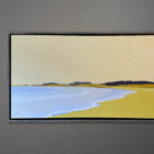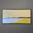 Offered here is an original painting on canvas by Michael Aron “Long Beach” 2024. 50 x 26 inches as float framed in matte black wood frame with a silvered edge. It depicts a view looking toward Long Beach Bar Light House from Orient Beach State Park. The colors were influenced by The Group of Seven, a group of Canadian landscape painters from the 1920s.