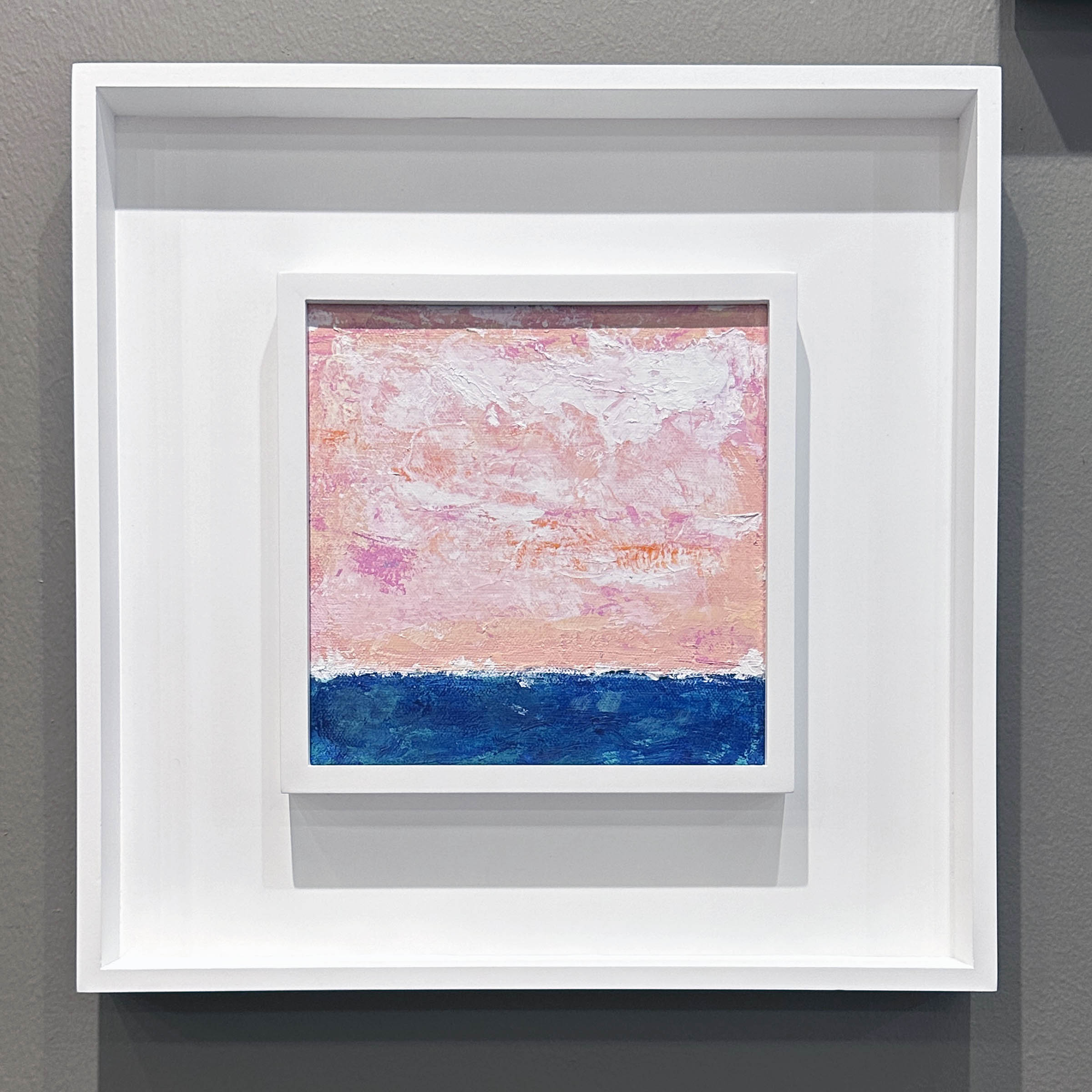 Impressionistic seascape by Charles Huschle. The painting is 8 x 8 in a 15 x 15 matte white shadow box. Huschle spent years here on the North Fork and is currently living in France. He has exhibited in New York, Colorado and Massachusetts.