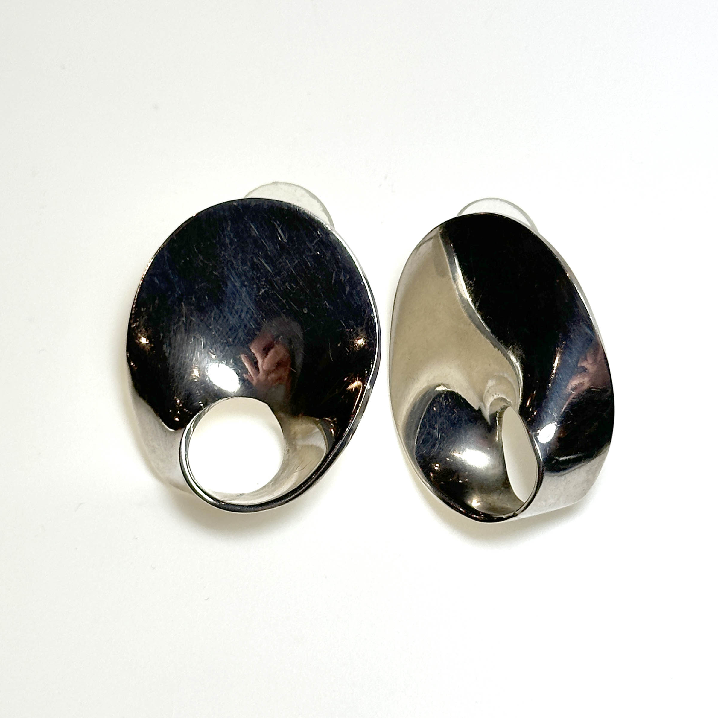 Earrings – Mid-Century Modern Mexico hallmarks heavy sterling oval eternity stud type. 18.8 grams.