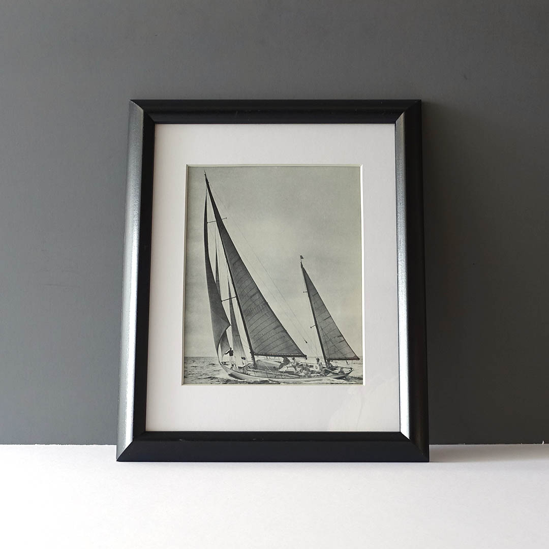 Dorade in the Newport, RI to Plymouth, England, 1931 Trans-Atlantic Race: Morris Rosenfeld was the preeminent yachting photographer of the 20th Century. He captured artistic images that convey the real feeling of large vessel sailing. His son Stanley published a survey of his work in 1958 entitled “The Story of American Yachting Told in Pictures.” It was brought to my attention by Anders Langendal, a local boat builder.