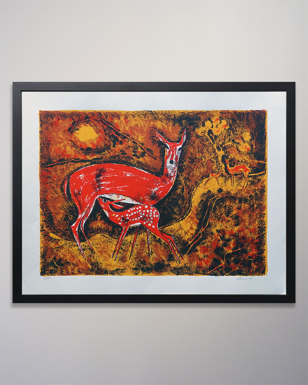 Leeoda was a New Jersey artist who printed this under the supervision of the surrealist Leo Russell at his atelier. Russell was a NY/NJ artist and educator. Russell began his career as a teacher in the 1940s Works Progress Administration (WPA). Russell has work in the permanent collection of the Guggenheim.
