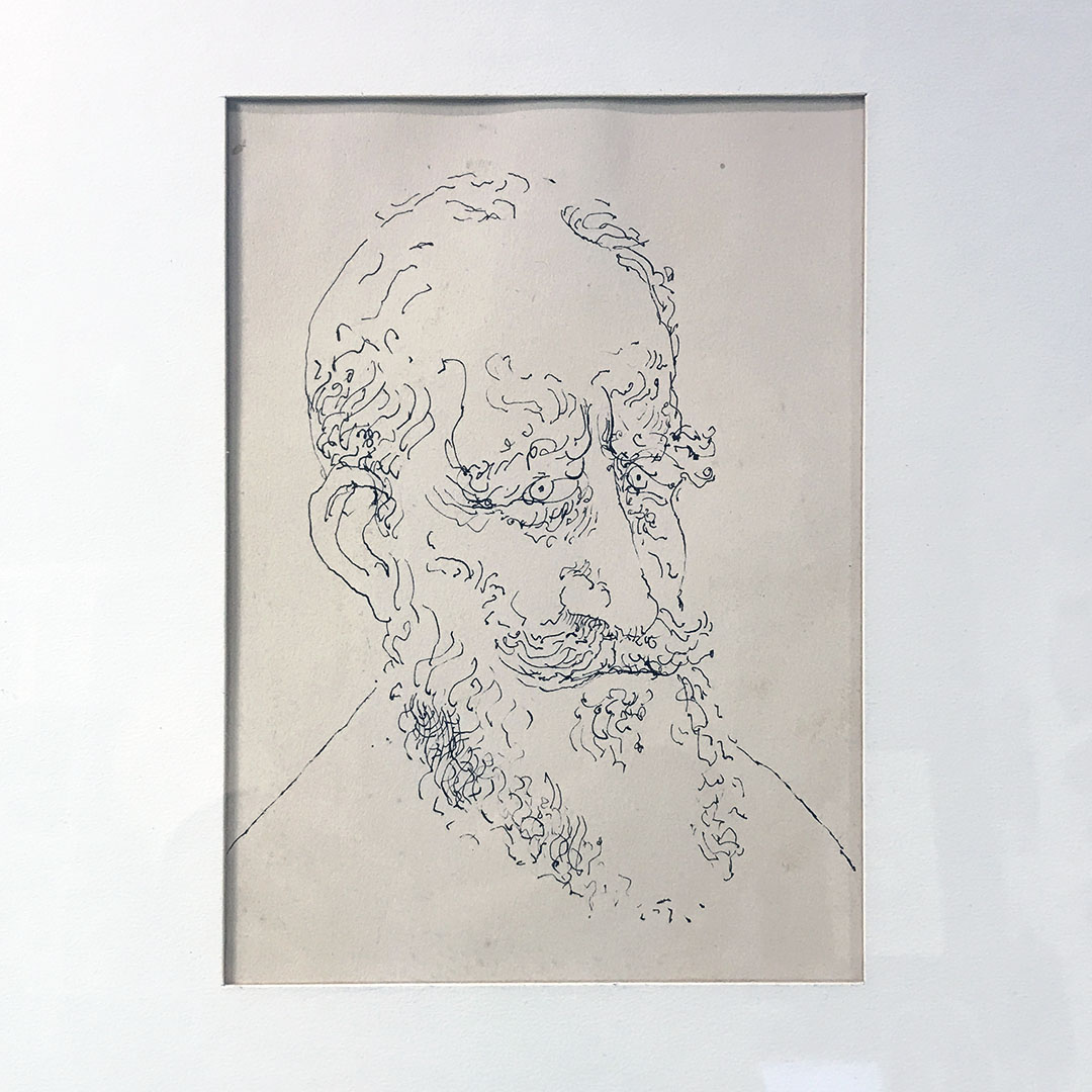 An original ink drawing by Milton Glaser of the world-famous Push Pin Studio. This art appeared in The Push Pin Monthly Graphic, No. 13, February 1958. The Graphic was a promotional newsletter sent to clients, potential clients, and friends of the New York design studio. This portrait of Bernard Shaw was one of nine Shaw portraits in this issue. It’s my favorite.