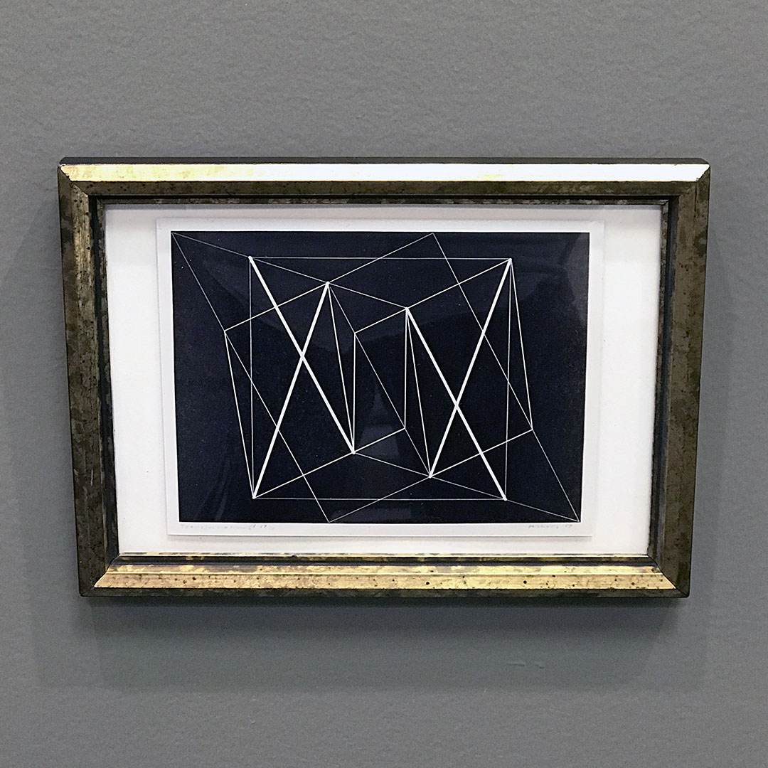 Before embarking on his “Homage to the Square” series, Albers did other great abstract works including this linocut entitled “Transformation C” from 1950. The original is in the Metropolitan Museum of Art. This 5×7 lithograph appeared in a catalog for his exhibit at the Hirschl & Adler Galleries in NY. It is in a vintage gilt wood frame.