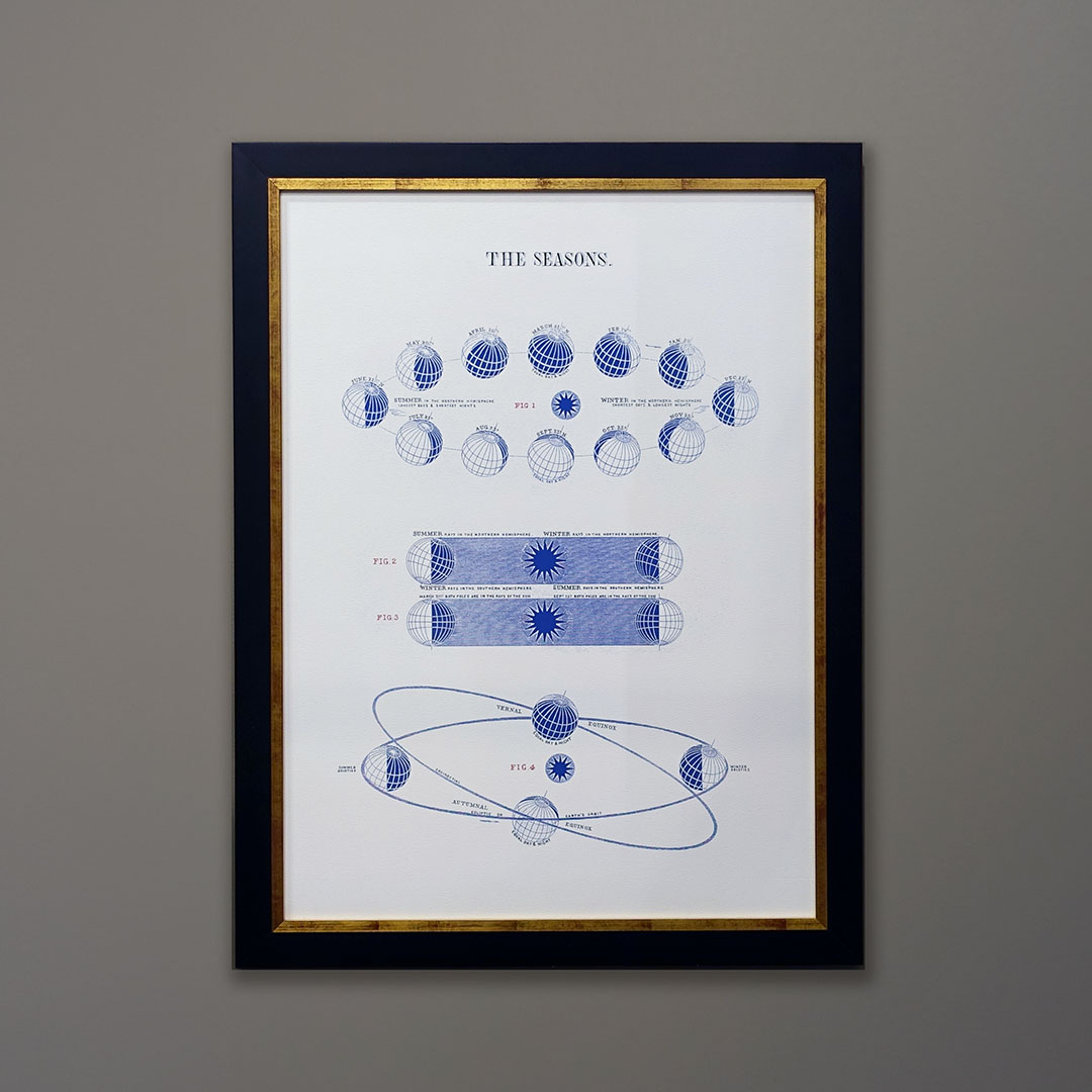 After the wood engraving that appeared in the 1855 book Smith’s Illustrated Astronomy, Designed for the Use of the Public or Common Schools in The United States by Asa Smith. The artwork has been retouched and enlarged for display in the modern home. Offered is reproduction from the original—an archival pigment print on 100% rag watercolor paper in a black and gold leaf wood frame with a non-glare glass face. 26 x 34 inches.