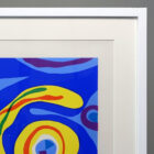 Silkscreen printing is done by applying a stencil to a fine mesh screen, adding ink, then applying pressure to squeegee the ink through the mesh onto the paper. The stencil can be hand cut, photographic emulsion, or painted directly onto the screen. These prints have lush, thick, opaque ink—often in very bright colors. Each color is applied individually. Artists will often number these prints in editions. It takes years to perfect the technique.