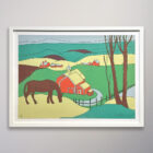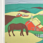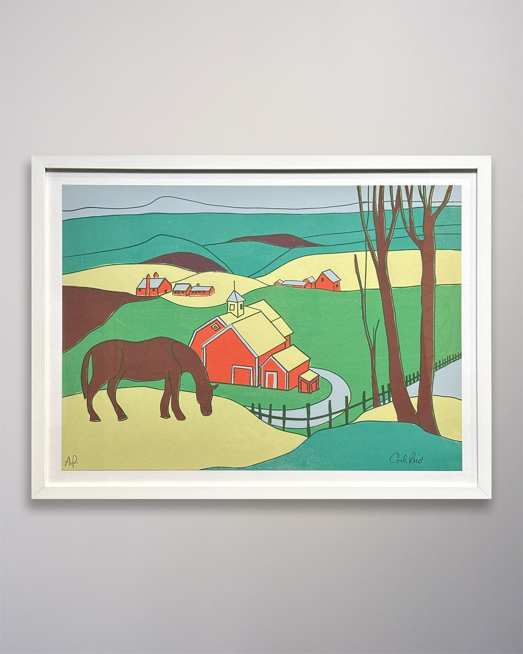 9-606 Mid-Century Modern Horse Farm Silkscreen Print Reid 25 x 20