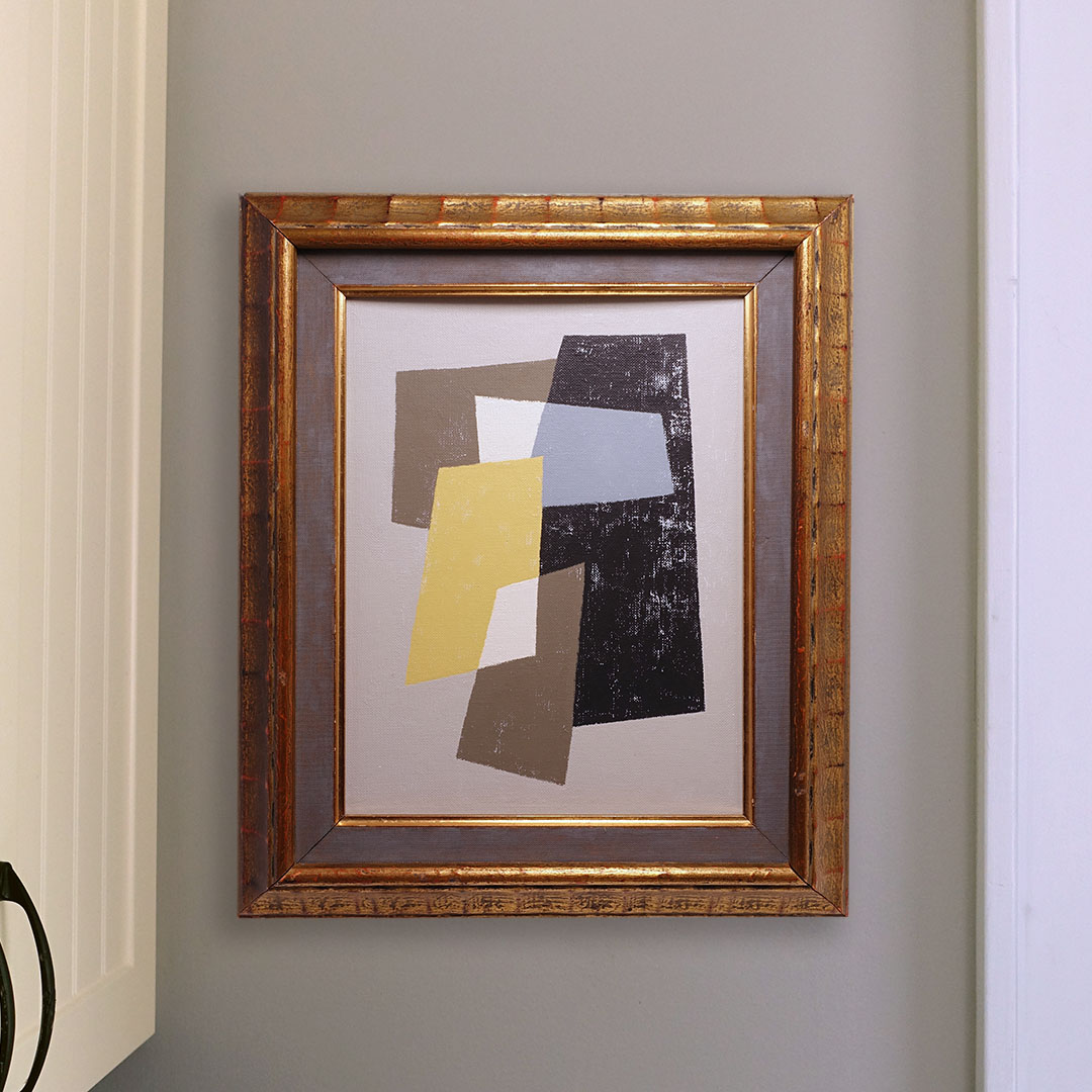 Homage to Charles G. Shaw. Original acrylic painting in a richly carved and gilded 1950s Swedish frame. Shaw wrote for the New Yorker and has paintings hanging in the Guggenheim. A hero of mine. The painting is 8 × 10 inches and the overall framed size is 11 × 13 inches. By Michael Aron.